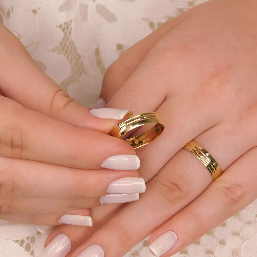 Nestas alianças, detalhes e conforto unem-se, tornando-se um só. Esse composé minimalista combina com casais que têm a cumplicidade e a lealdade como prioridades, e guardam apenas um para o outro sua verdadeira essência. Um clássico com uma singela surpresa – ideal para apaixonados que nunca vão parar de surpreender um ao outro!