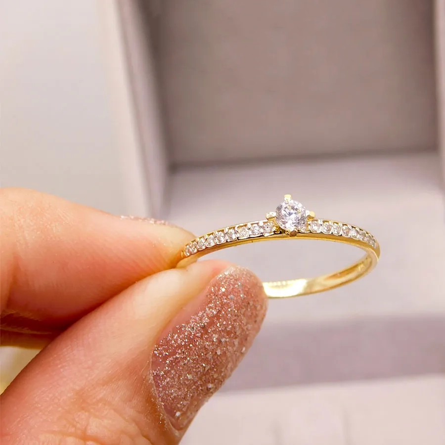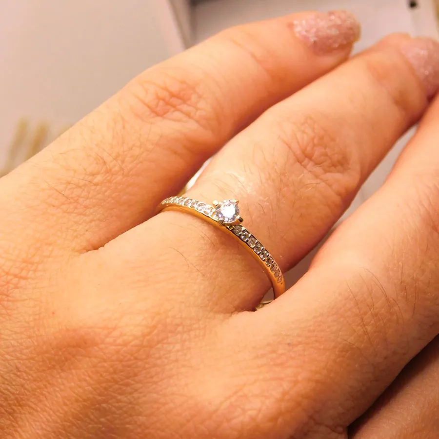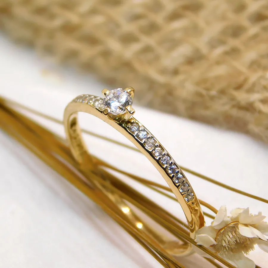 Anel Solitário DELICATO Individual em Ouro 10K com Zircônia e 1,87g
