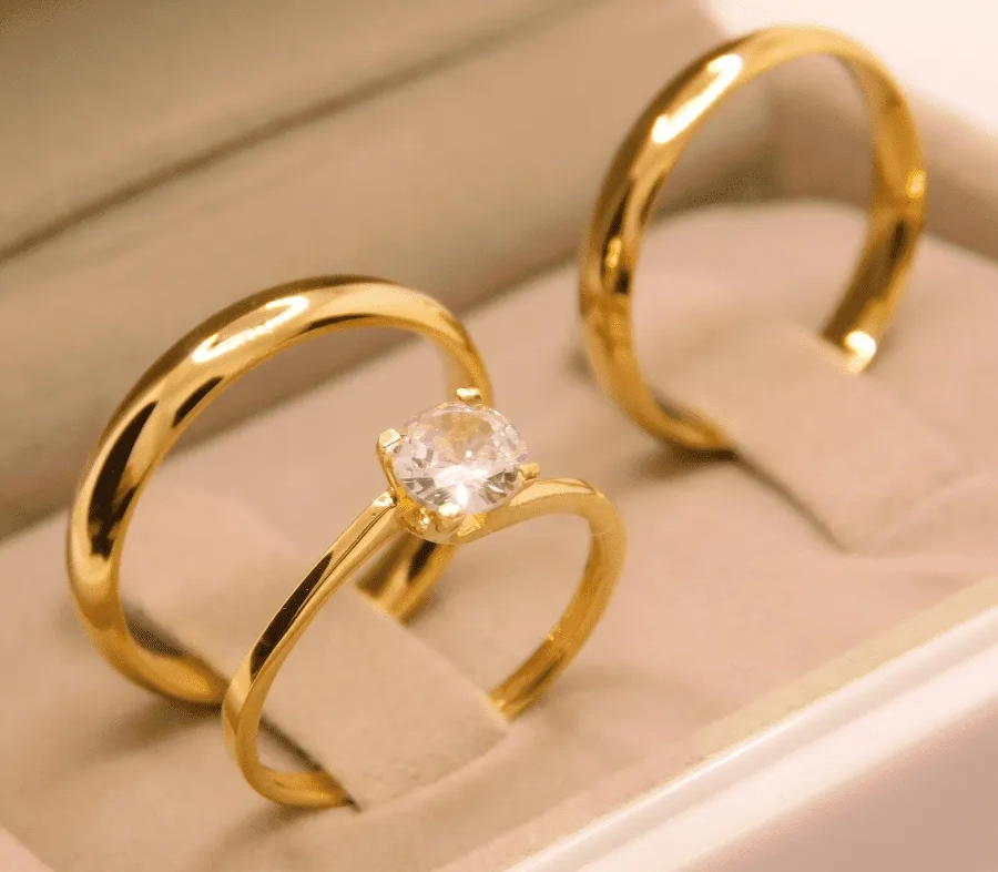 Conjunto Par de Alianças e Anel Solitário em Ouro 18K ANTURIA com Zircônia e 11,3g
