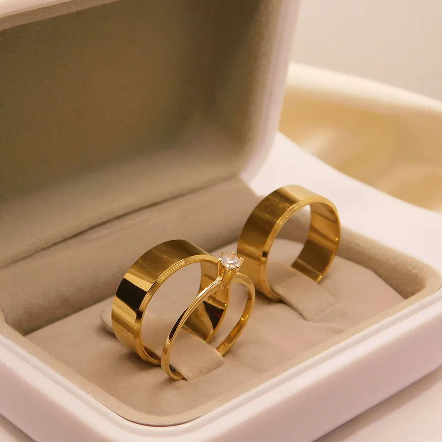 Estojo para joia, par de alianças e anel solitário